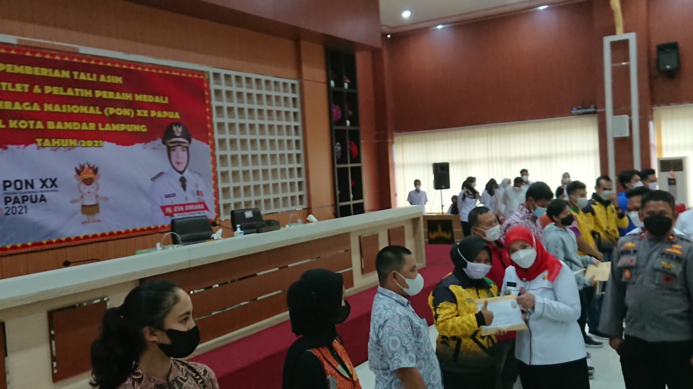 5W1HIndonesia.id, Bandar Lampung – Pemerintah Kota (Pemkot) Bandar Lampung memberikan tali asih kepada para atlet Kota Bandar Lampung yang berprestasi di ajang PON XX Papua Tahun 2021.