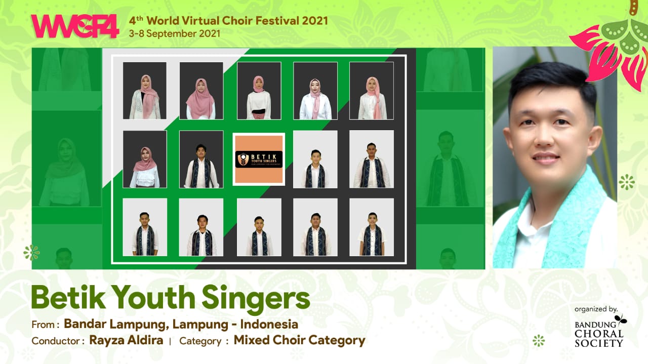 5W1HIndonesia.id, Bandar Lampung Betik Youth Singers (BYS) berhasil meraih Emas pada ajang bergengsi 4th World Virtual Choir Festival 2021, yang diselenggarakan secara virtual.