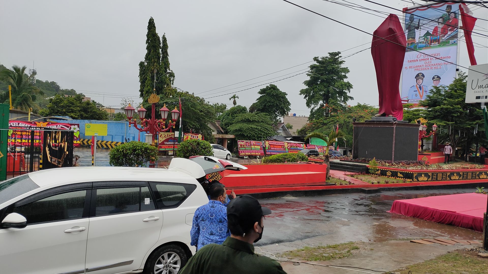 Meskipun di guyur hujan, prosesi tersebut tetap berlangsung dengan di hadiri oleh Walikota Eva Dwiana beserta jajaran pemerintahan Kota Bandar Lampung dan Sekejen DPW PDI Lampung Ningrum Gumay.