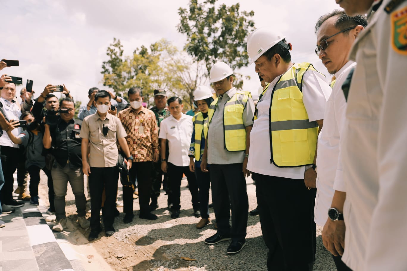 Gubernur juga menyempatkan diri melakukan peninjauan jalan dan pedestrian.