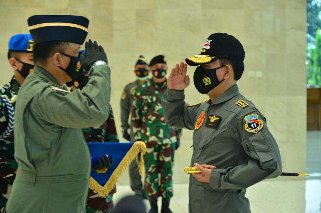 5W1HIndonesia, Jakarta – Kapolri Jenderal Polisi Idham Azis menerima dua penghargaan dari Tentara Nasional Indonesia (TNI), berupa Wing Kehormatan Penerbang Kelas I TNI Angkatan Udara dan Brevet Kapal Selam Hiu Kencana TNI Angkatan Laut.