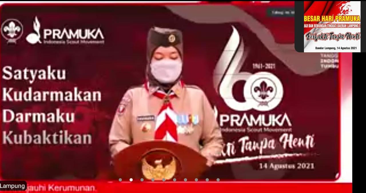 Hal tersebut disampaikan Ketua Kwarda Lampung Kak Chusnunia saat menjadi Irup Apel Besar Hari Pramuka ke-60 Tahun 2021 Tingkat Daerah Lampung secara virtual, Sabtu (14/8/2021) malam.