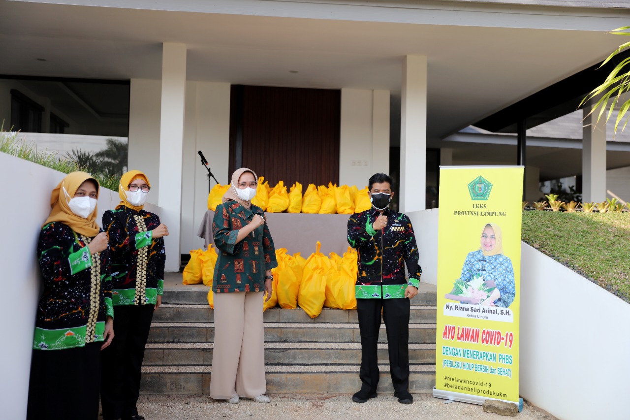 5W1HIndonesia.id, Bandar Lampung – Ketua Lembaga Koordinasi Kesejahteraan Sosial (LKKS) Provinsi Lampung Riana Sari Arinal menyerahkan 150 paket bantuan sembako kepada masyarakat lanjut usia di Kabupaten Pringsewu dan Tulang Bawang secara simbolis, di Mahan Agung, Bandar Lampung, Jumat (23/7/2021).