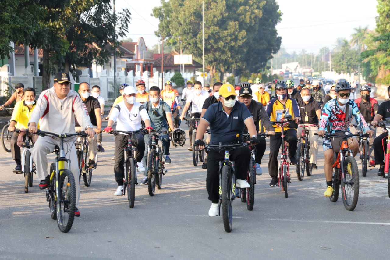 5W1HIndonesia.id, Lampung Tengah – Gubernur Lampung Arinal Djunaidi bersama para guru SMA/SMK di Kabupaten Lampung Tengah berolahraga sepeda santai atau Gowes Ki Hadjar untuk meningkatkan imunitas tubuh dalam melawan Covid-19, pada Sabtu (12/6/2021) pagi.