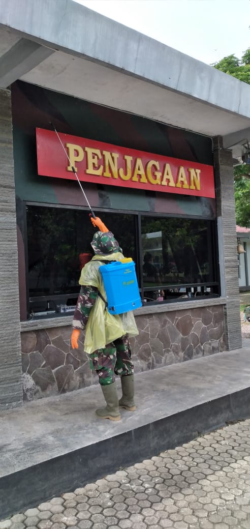 5W1HIndonesia.id, Pesawaran – Brigade infanteri 4 Marinir/BS laksanakan penyemprotan cairan disinfektan dalam rangka mengantisipasi dan meningkatkan kewaspadaan terhadap penyebaran virus Covid-19 di Mako Brigif 4 Mar/BS Piabung, Padang Cermin, Pesawaran, Lampung, Senin (23/03/2020).