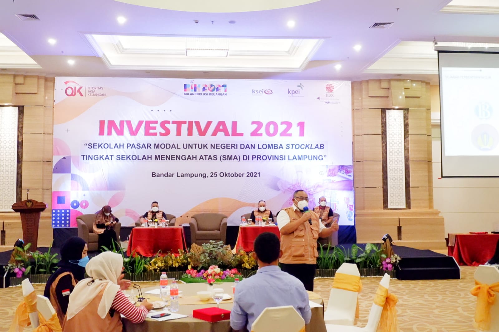 Turut hadir Kepala Bursa Efek Indonesia Perwakilan Provinsi Lampung Hendi Prayogi, Kepala Dinas Pendidikan dan Kebudayaan Provinsi Lampung Drs Sulpakar MM dan Pimpinan PT Indo Premier Sekuritas Cabang Lampung Arum Isti Chaerani. Kegiatan bertempat di Swissbell hotel, Bandar Lampung.