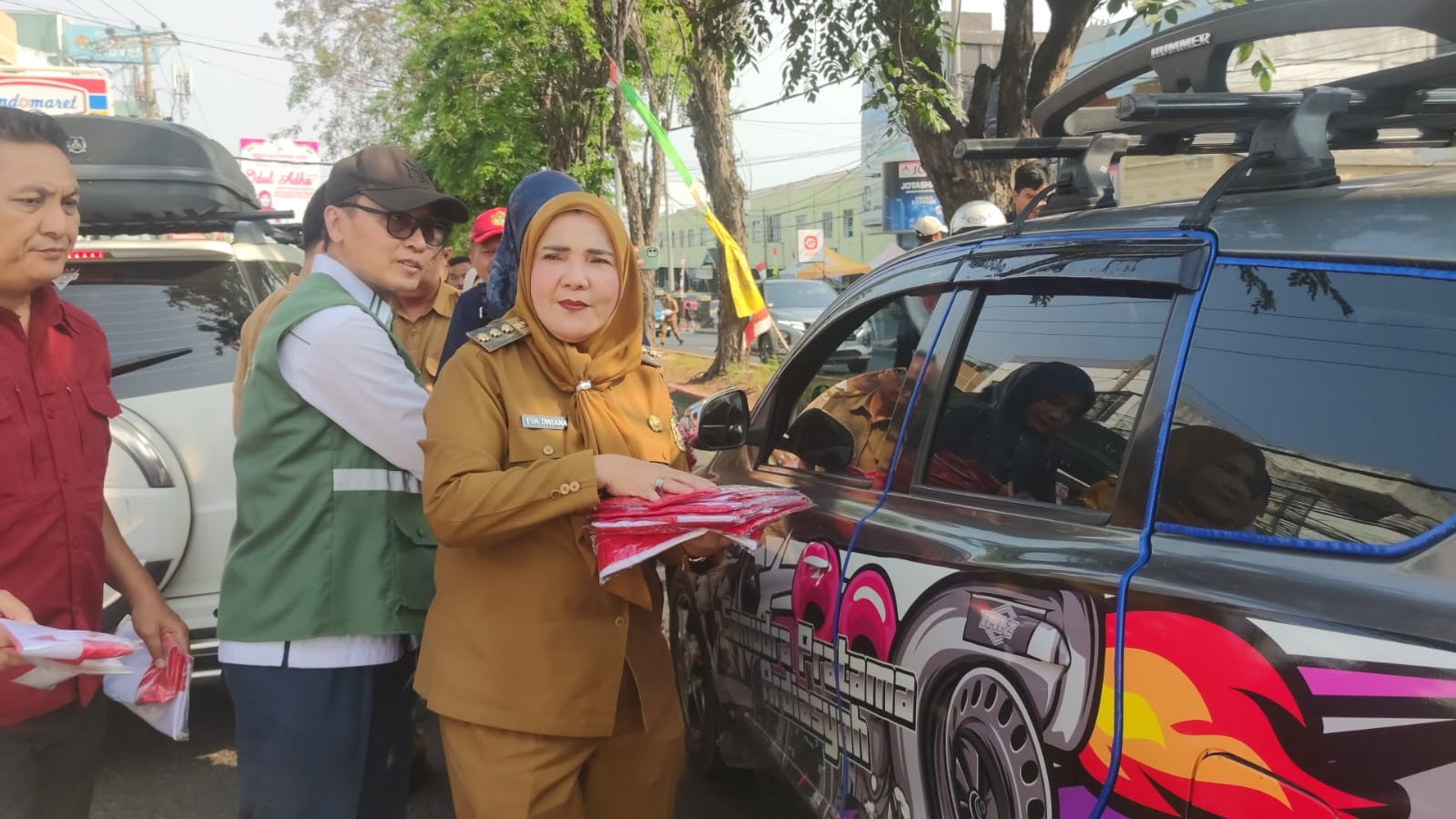 “Hari ini kita membagikan 5.000 bendera berbagai ukuran dalam rangka menyambut HUT RI ke-79. Diharapkan seluruh masyarakat mempunyai bendera sebagai bentuk kecintaan kita kepada NKRI,” ungkapnya.
