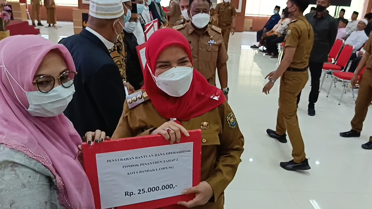 “Total Pondok Pesantren (Ponpes) yang mendapatkan bantuan ada 85,” ujar Walikota Bandar Lampung, Eva Dwiana, usai memberikan bantuan secara simbolis pada Ponpes, di gedung Semergou, Selasa 31 Januari 2023.