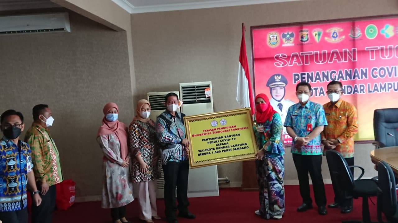 5W1HIndonesia.id, Bandar Lampung – Pemerintah Kota (Pemkot) Bandar Lampung menerima bantuan sebanyak 1.500 paket sembako dari Universitas Teknokrat Indonesia (UTI).