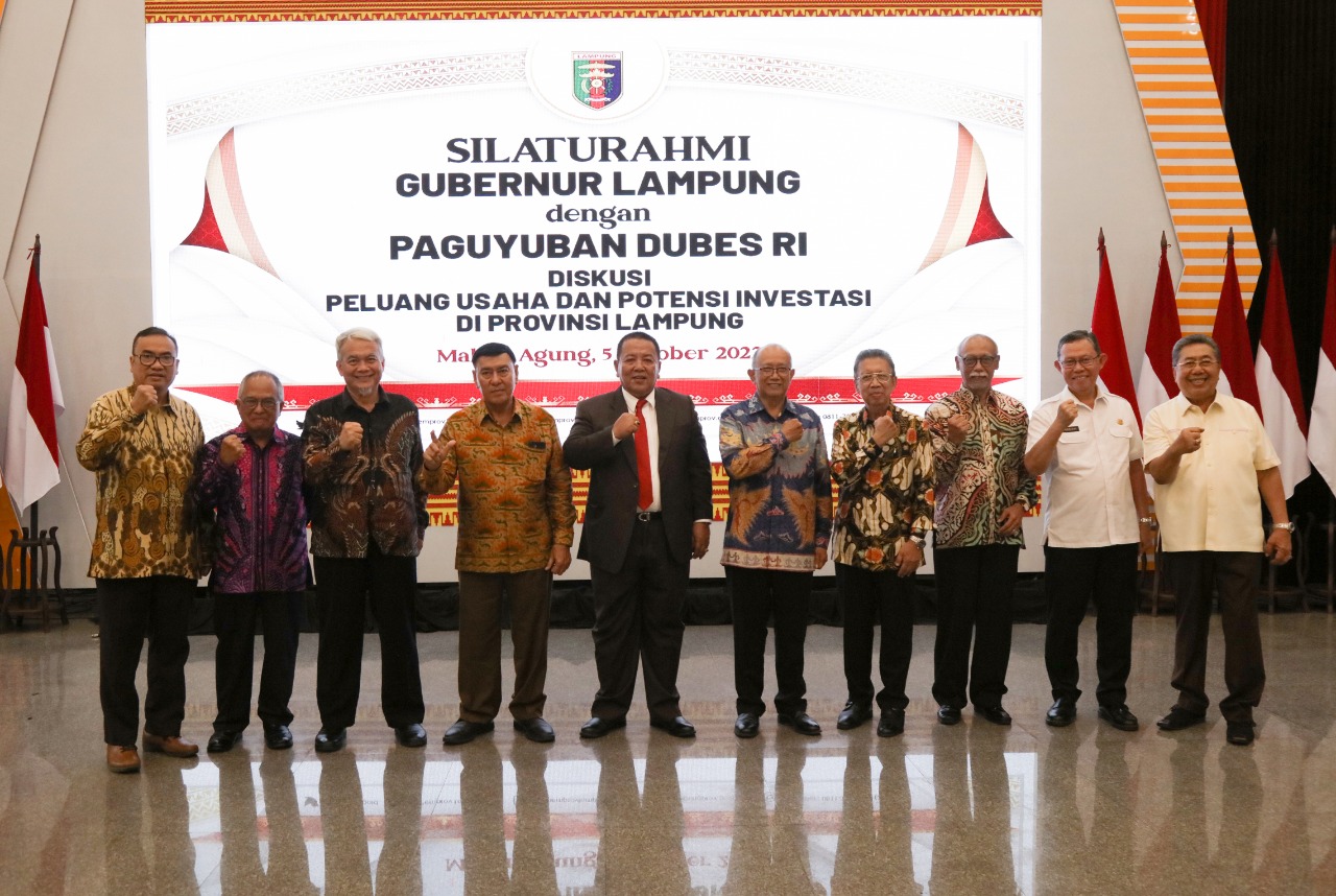 Hal itu disampaikan Gubernur saat silaturahmi dengan Paguyuban Dubes RI dalam rangka diskusi peluang usaha dan potensi investasi di Provinsi Lampung di Mahan Agung, Rumah Dinas Gubernur, Rabu (5/10/2022).