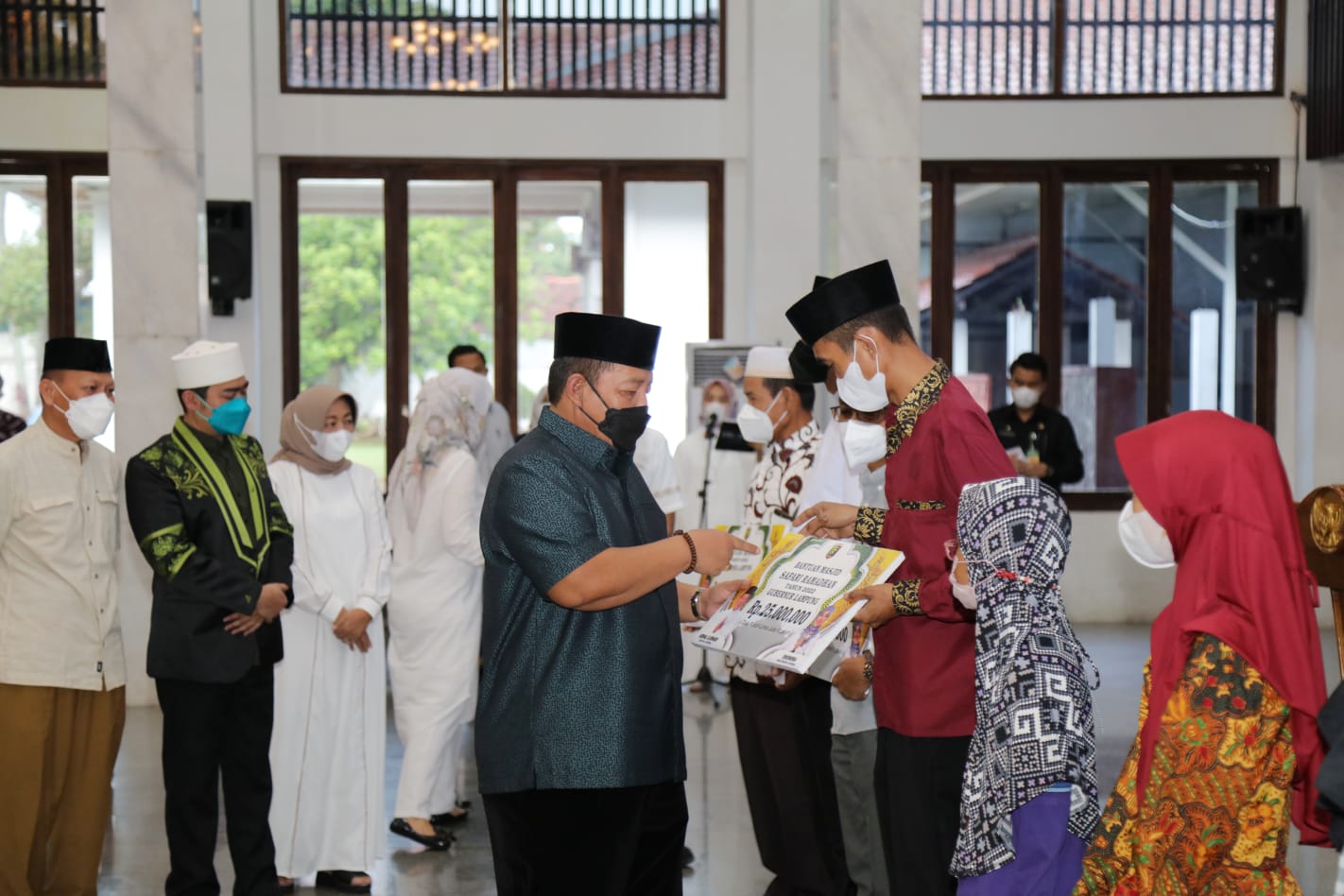 Diserahkan juga bantuan Safari Ramadhan kepada 16 Masjid di Kabupaten/Kota dan bantuan untuk yatim piatu yang ada di Kabupaten/Kota. (Rls/SA)