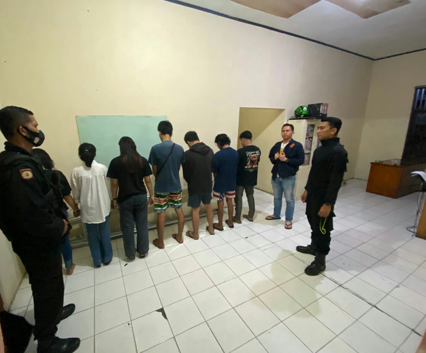 Setelah berada di lokasi kejadian, tim gabungan mencurigai adanya sembilan orang remaja yang terdiri dari enam orang pria dan tiga wanita sedang kongko-kongko, dan minum-minuman keras.