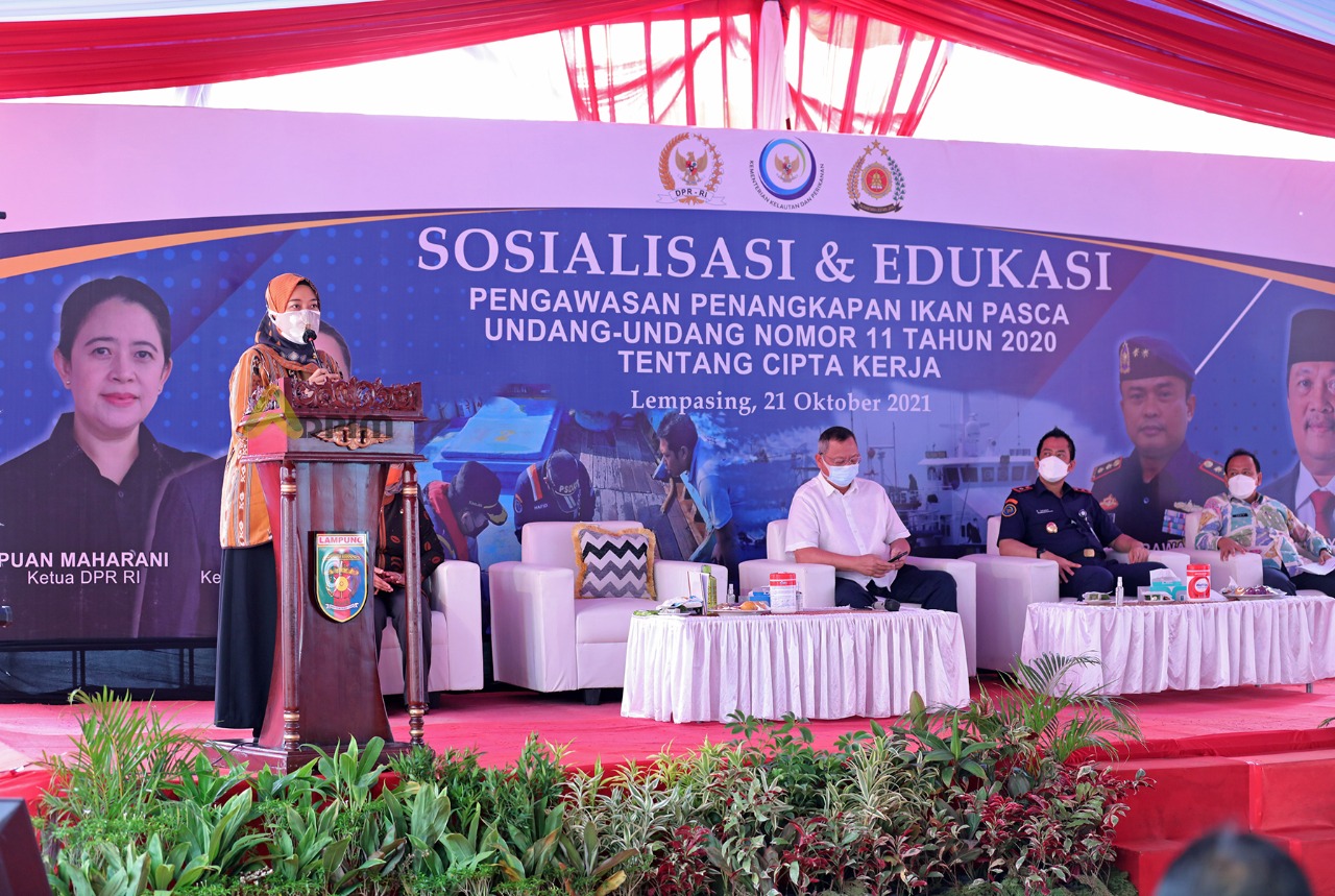 5W1HIndonesia.id, Bandar Lampung Wakil Gubernur Lampung Chusnunia Chalim membuka acara sosialisasi dan edukasi sanksi administratif bidang pengawasan sumber daya kebutuhan dan perikanan, di Pelabuhan Pelelangan Lempasing, Kamis (21/10/2021).