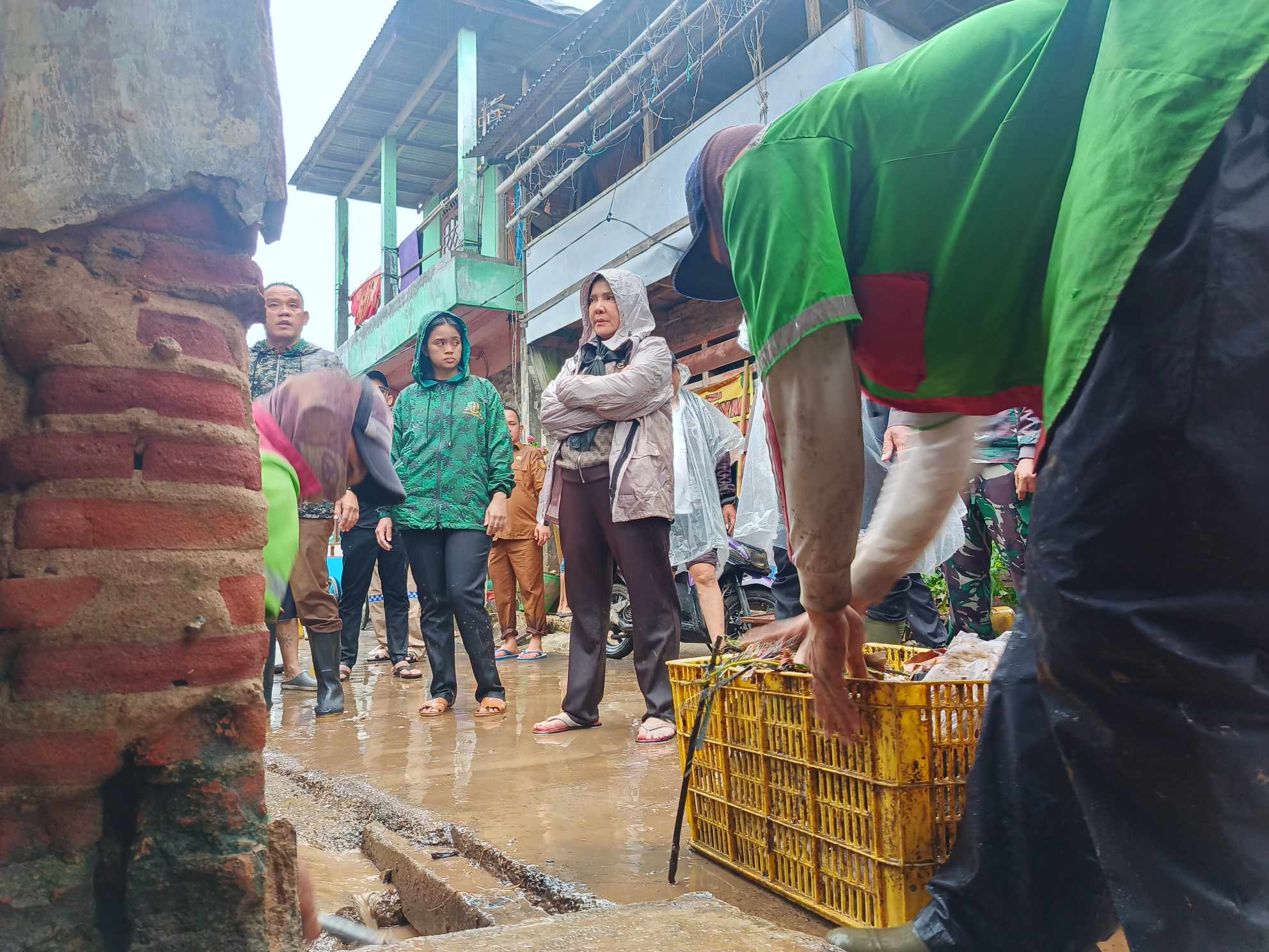 Tim dari BPBD, Pol PP dan Damkar pun turut serta untuk mengevakuasi warga serta membantu membersihkan rumah dari lumpur.