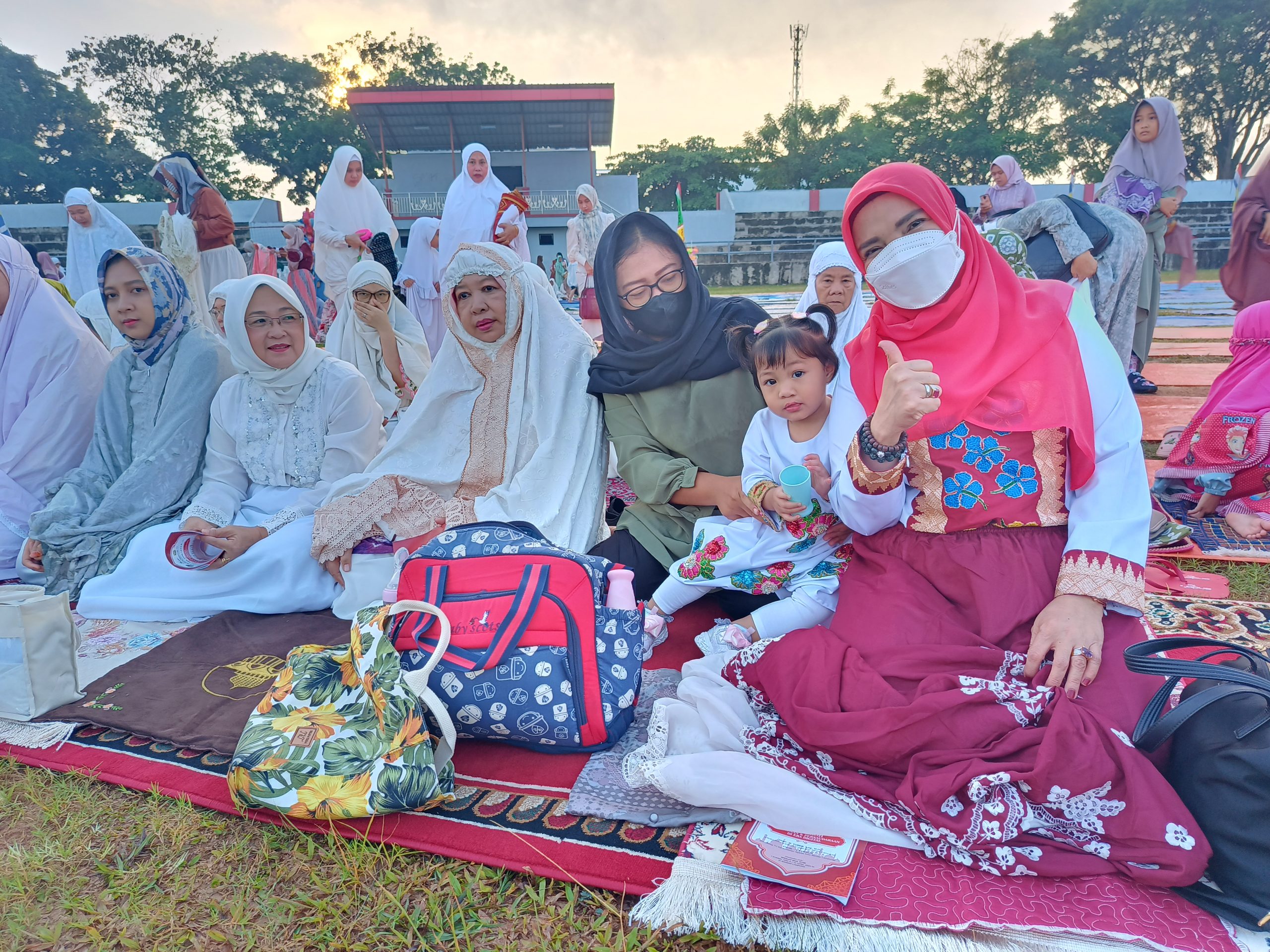 Walikota Eva Dwiana Beserta Keluarga Shalat Ied di Lapangan Way Dadi