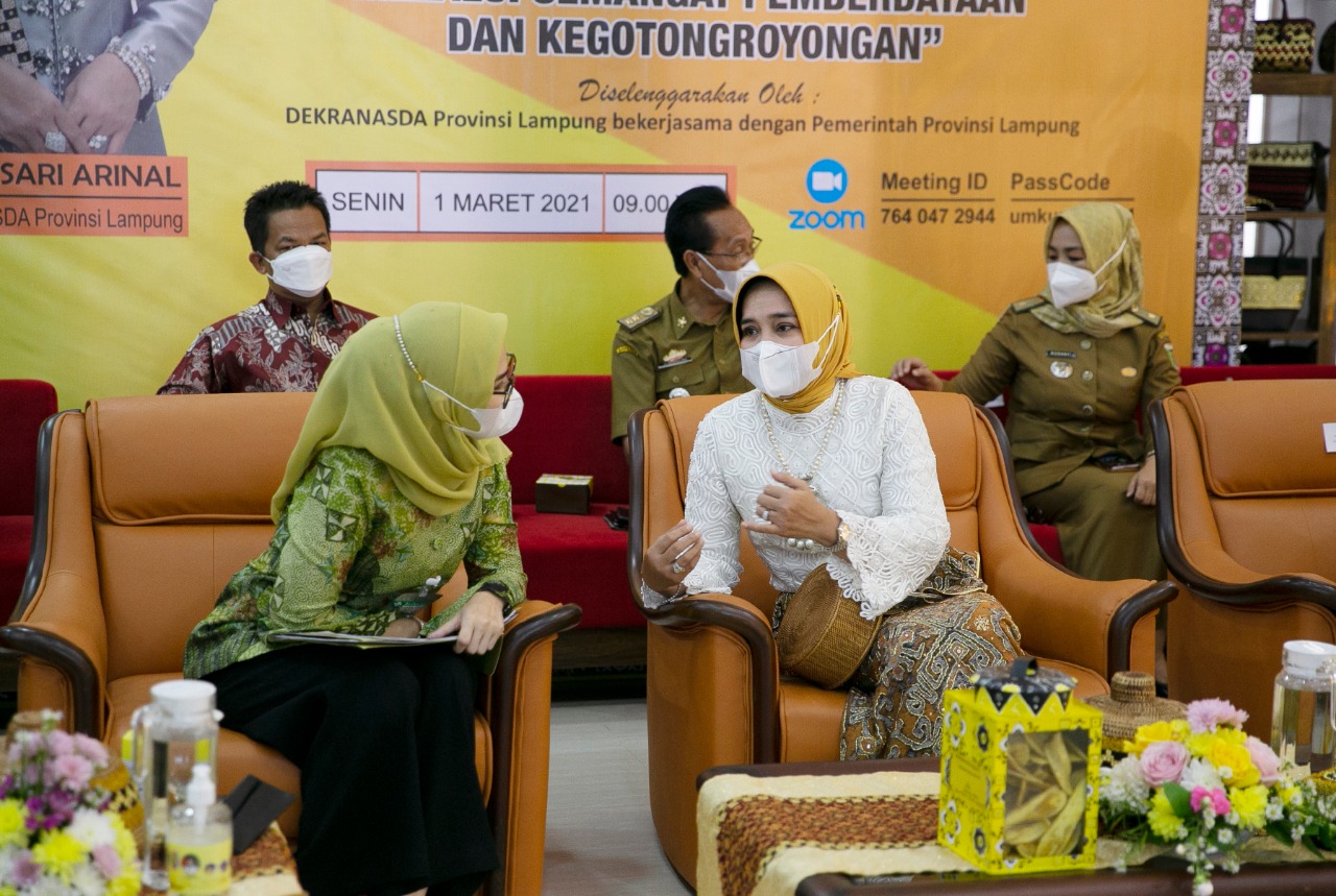 Hal itu diungkapkan Riana saat menjadi narasumber pada acara Webinar dalam rangka HUT Ke-41 Dekranas bertemakan “UMKM Bangkit Di Masa Pandemi Covid-19 Melalui Semangat Pemberdayaan dan Kegotongroyongan”, di Gedung Gallery Dekranasda Provinsi Lampung, Bandar Lampung, Senin (1/3/2021).
