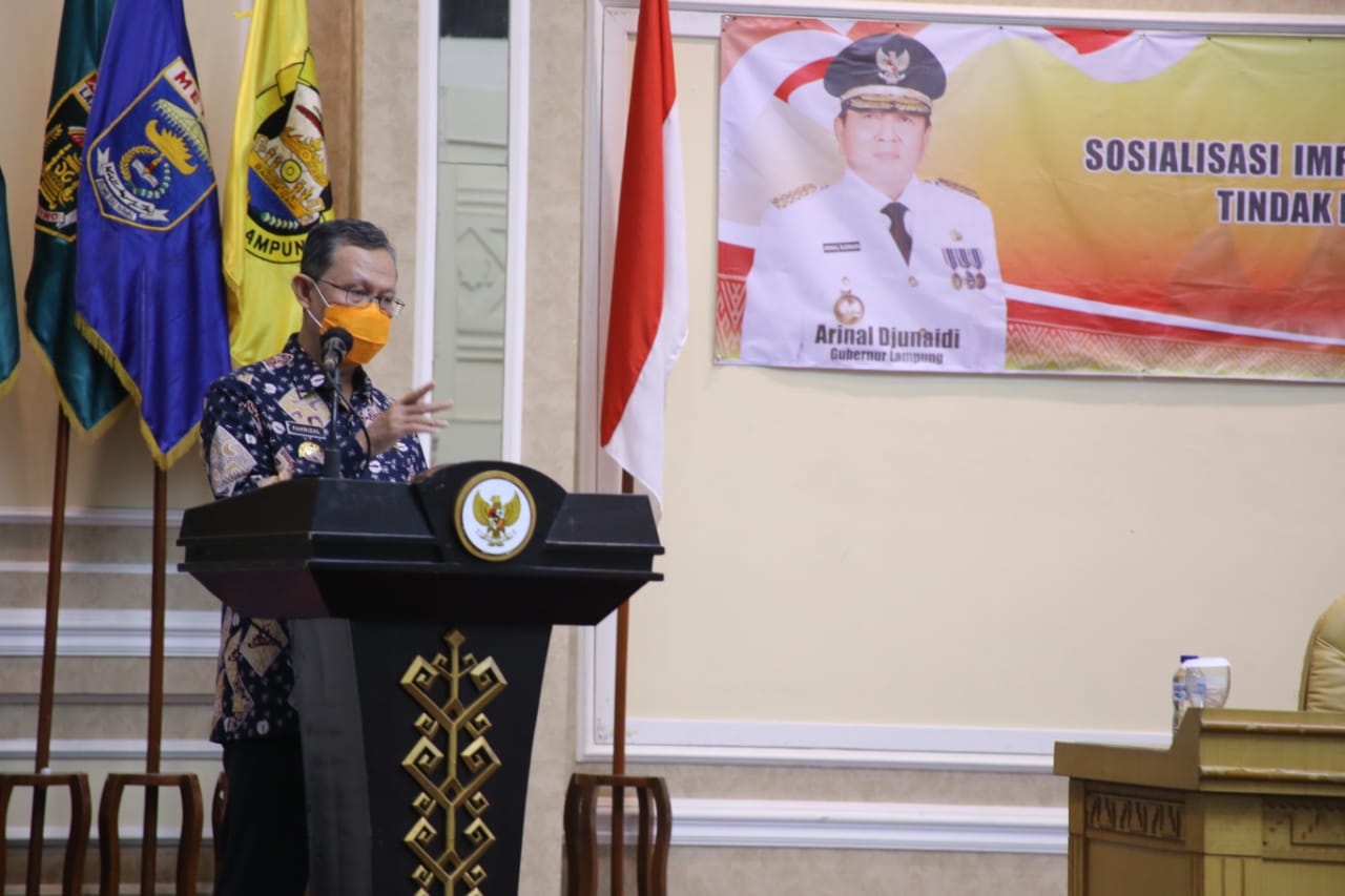 5W1HIndonesia.id, Bandar Lampung – Sekretaris Daerah Provinsi Lampung Fahrizal Darminto menghadiri Sosialisasi Rencana Implementasi Whistle Blowing System (WBS) Tindak Pidana Korupsi (TPK) Terintegrasi di Provinsi Lampung, di Balai Keratun Lt. 3, Komplek Kantor Gubernur Lampung, Kamis (4/11/2021).